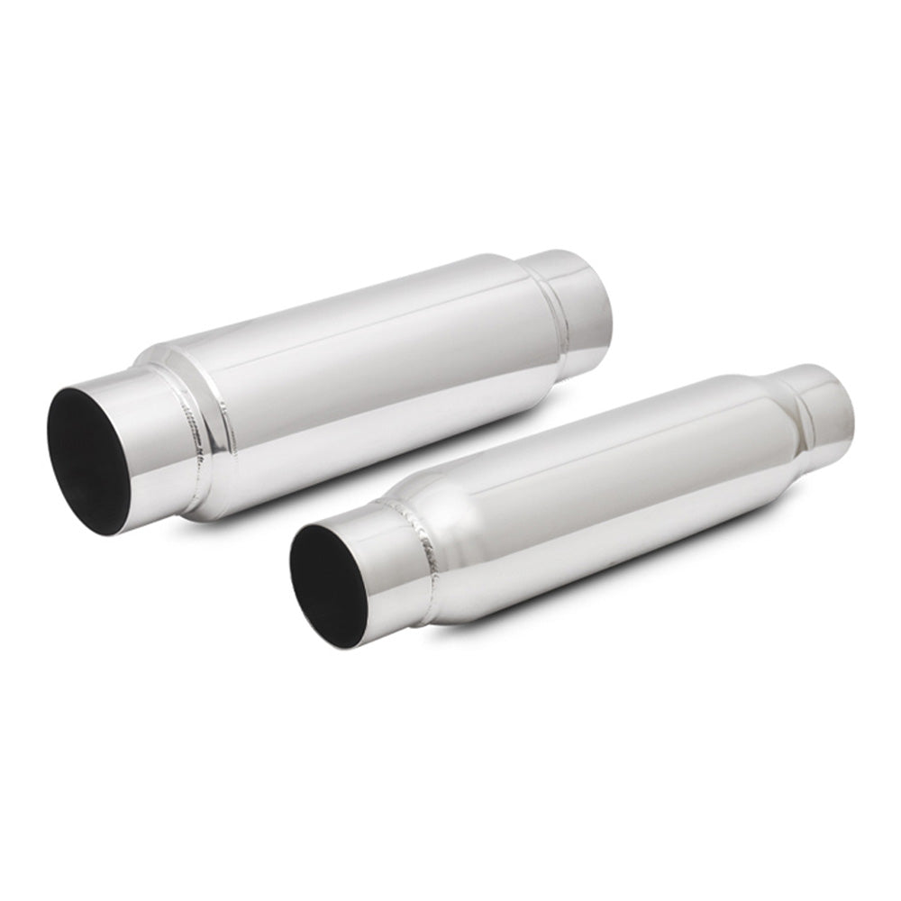 Vibrant Performance standard bottle style resonators are round bodied, densely packed with our premium multi-layered sound absorption materials, and manufactured from 304 stainless steel and CP1 Titanium for optimum durability and corrosion resistance. Vibrant Performance standard bottle style resonators have a sleek design that is optimal for easy installation and work to maximize the reduction of exhaust db levels. 2-3" ID resonators are 12" in length, 3-4" ID resonators are 18" in length.
